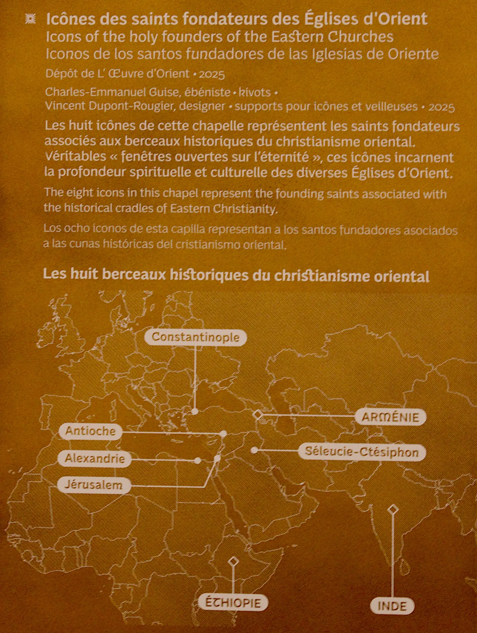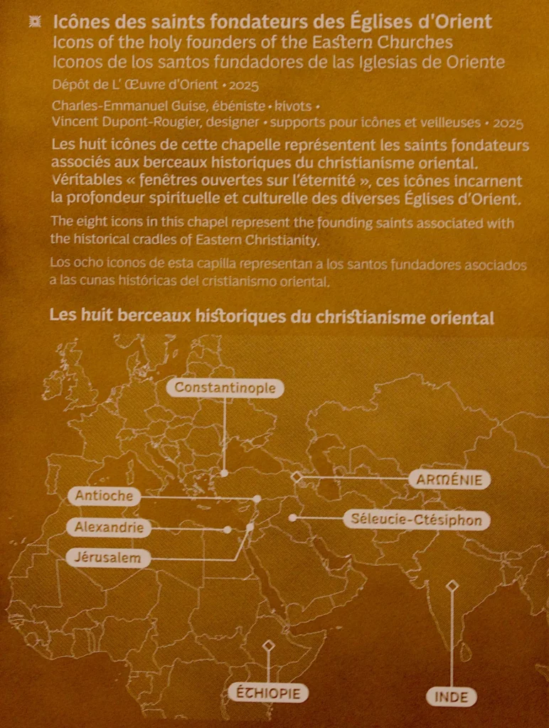 Cette œuvre, rigoureuse, humble et profondément enracinée dans la foi chrétienne, trouve sa place au cœur de la nouvelle « chapelle des chrétiens d’Orient » de Notre‑Dame, un lieu de prière et de communion qui lie les traditions orthodoxes et catholiques. C’est l’alliance d’un savoir‑faire d’artisan et d’une vocation spirituelle : faire du bois non seulement un support, mais un écrin au mystère.